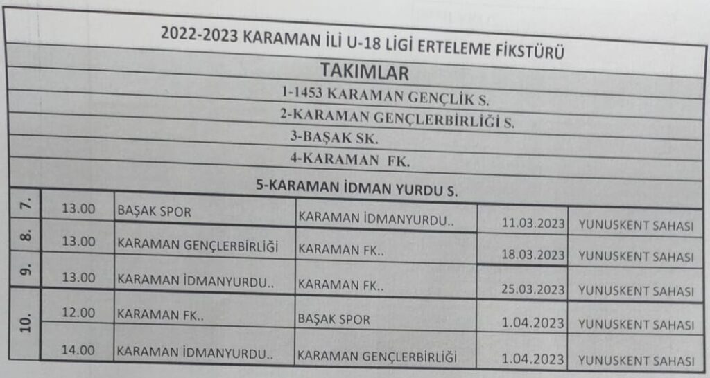 2022-2023 KARAMAN İLİ U-18 LİGİ ERTELEME FİKSTÜRÜ