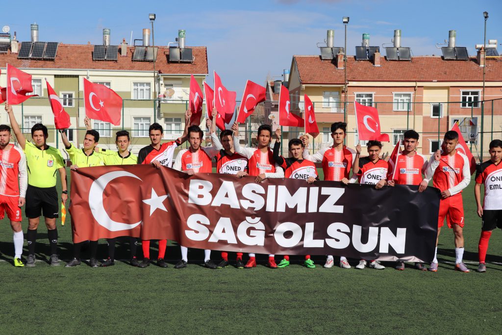 TFF U19 Amatör Futbol maçlari öncesi sporcular sehit olan kahraman askerlerimiz anisina “Basimiz Sag Olsun” pankartiyla sahaya çikarak 1 dakikalik saygi durusunda bulundular.